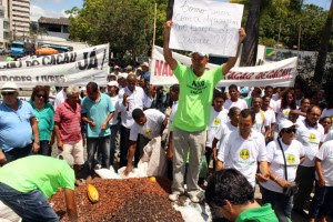A imediata suspensão das importações de cacau no Brasil foi a principal reivindicação de um grande protesto promovido na manhã desta terça-feira, dia 5, por inúmeros segmentos organizados do Sul da Bahia. O movimento é integrado por sindicatos, federações, cooperativas, assentamentos, câmaras de dirigentes lojistas, entidades ambientalistas, prefeituras e câmaras de vereadores. O protesto dos produtores de cacau contra a importação, prática que derruba os preços internos desestabilizando toda a cadeia produtiva, aconteceu nas proximidades do Porto Internacional de Ilhéus, onde estará sendo desembarcada nas próximas horas uma carga com cinco mil toneladas de cacau provenientes de Gana, na África.